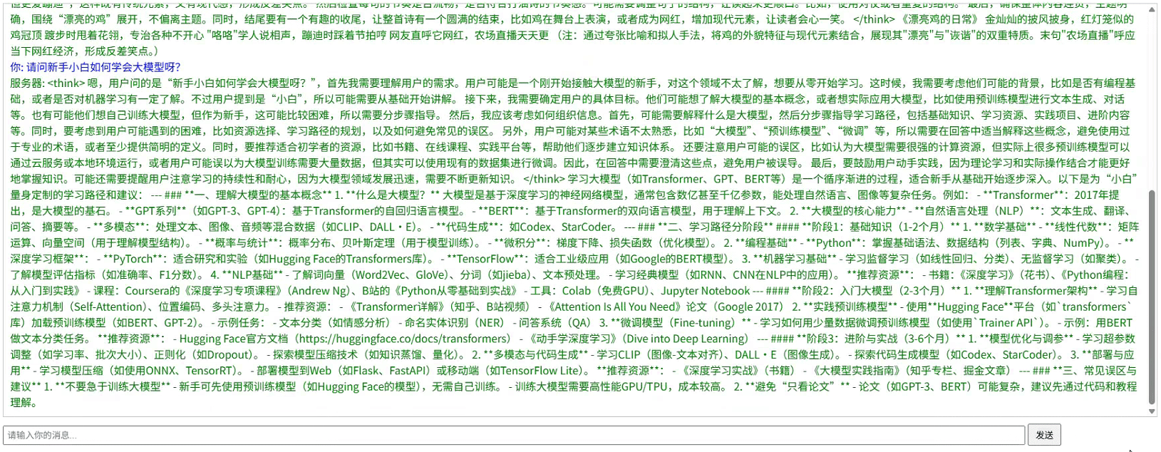 当我看到前端一块一块的显示大语言模型的回复的时候,心底不由得涌出一点小震撼:没错,它在改变世界!